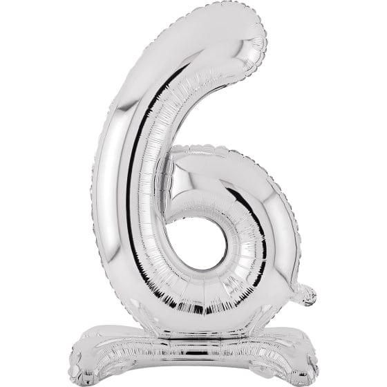 Silver Large Number 6 Air Filled Standing Foil Balloon 76cm Each