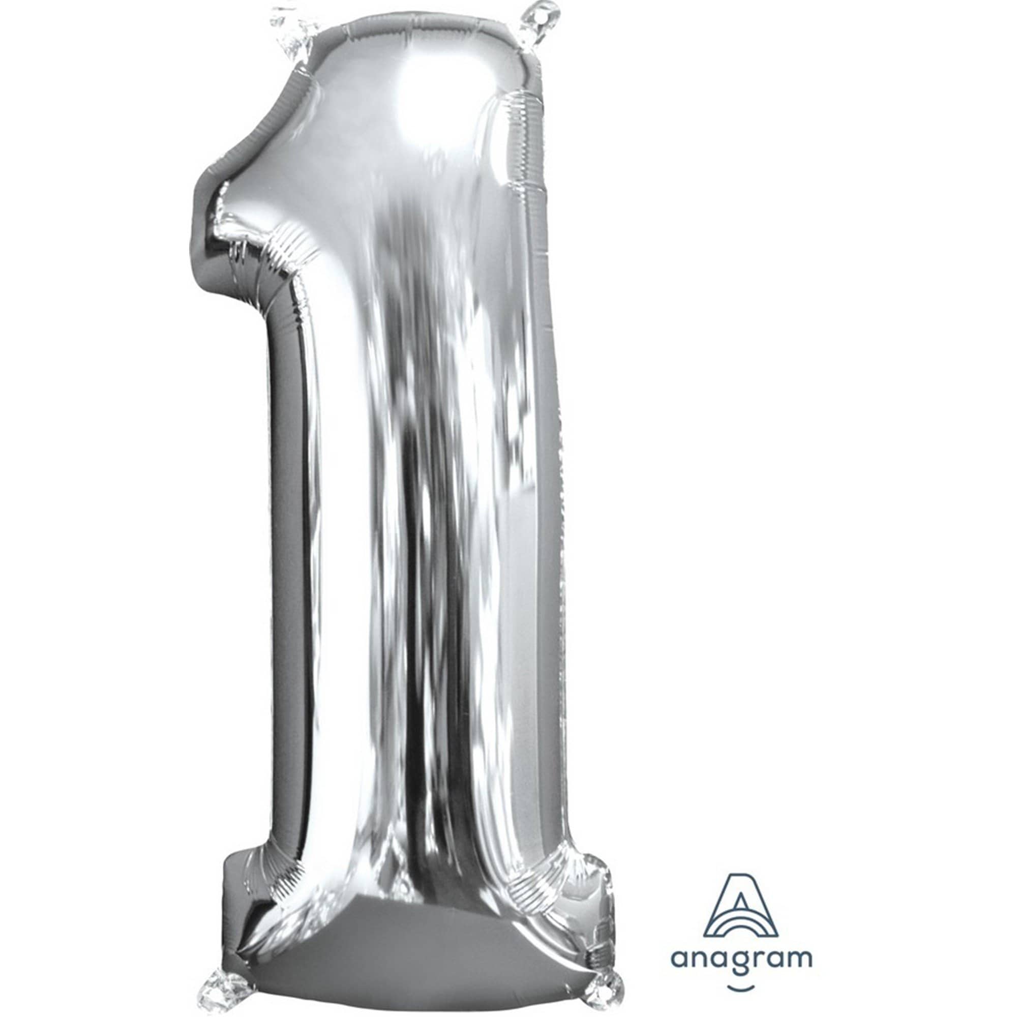 Silver Numeral 1 Mid-Size Shape Foil Balloon Balloon 66cm Each | Online Party Store | Numbers Foil Balloons