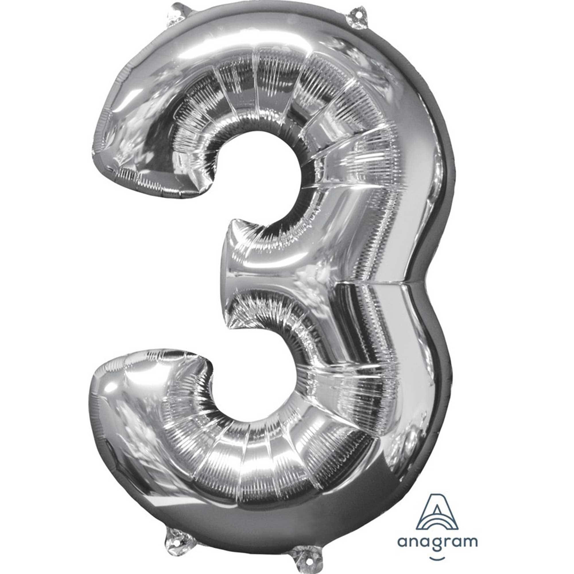 Silver Numeral 3 Mid-Size Shape Foil Balloon Balloon 66cm Each | Online Party Store | Numbers Foil Balloons