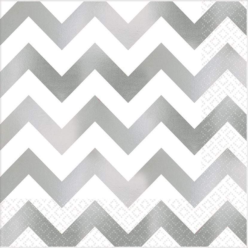 Premium Chevron Silver Hot-Stamped Lunch Napkins, 33cm x 33cm , Paper, 16 Pack