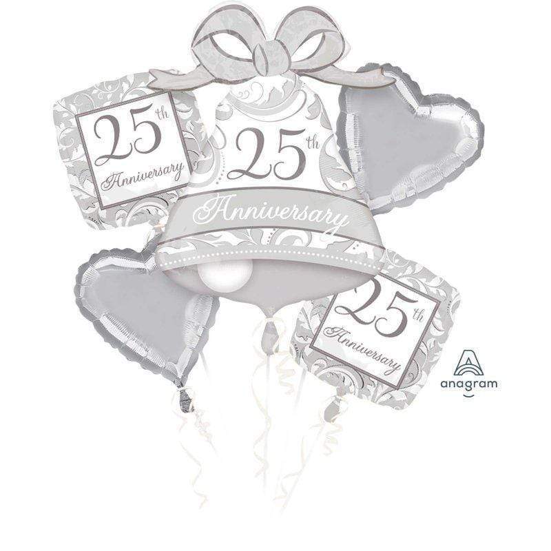 Silver Scroll 25th Anniversary Balloon Bouquet 5pk | Online Party Store | Balloon Bouquet