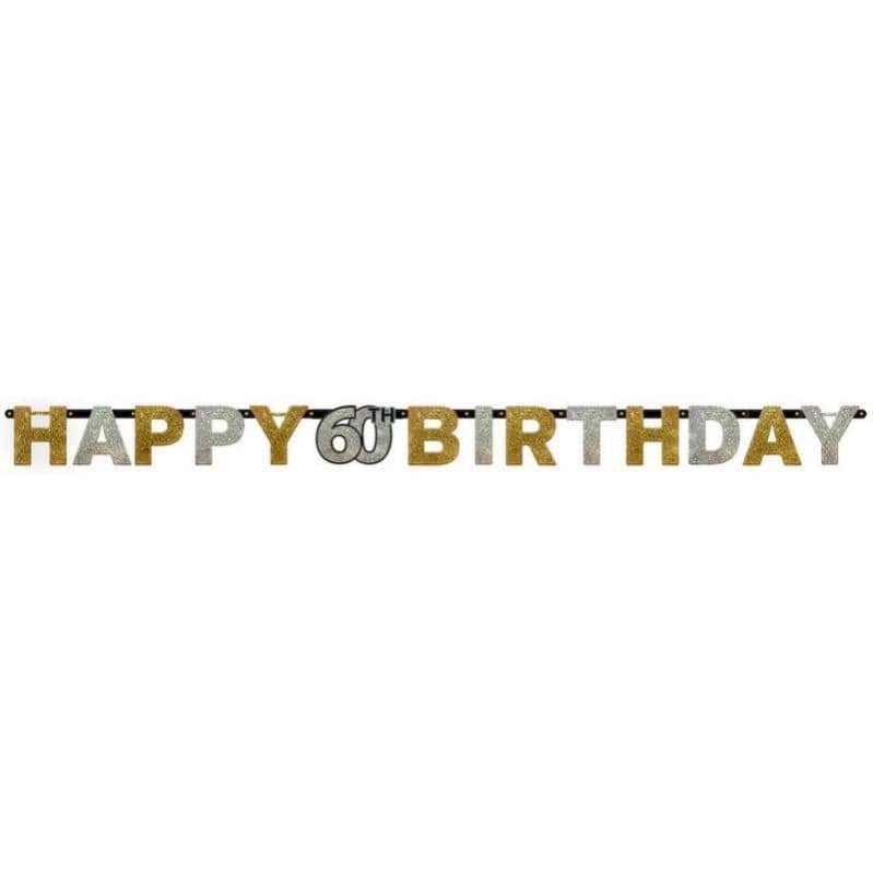 Sparkling Celebration 60th Prismatic Letter Banner Each | Online Party Store | 60th Birthday Party Supplies