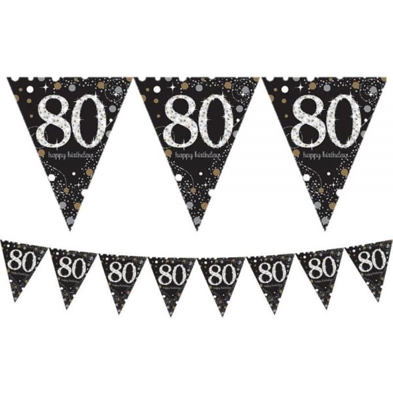 Sparkling Celebration 80 Prismatic Pennant Banner - Plastic, 12 flags, 6 1/2in x 8in , 12 flags, 6 1/2in x 8in , Suitable for indoor and outdoor use