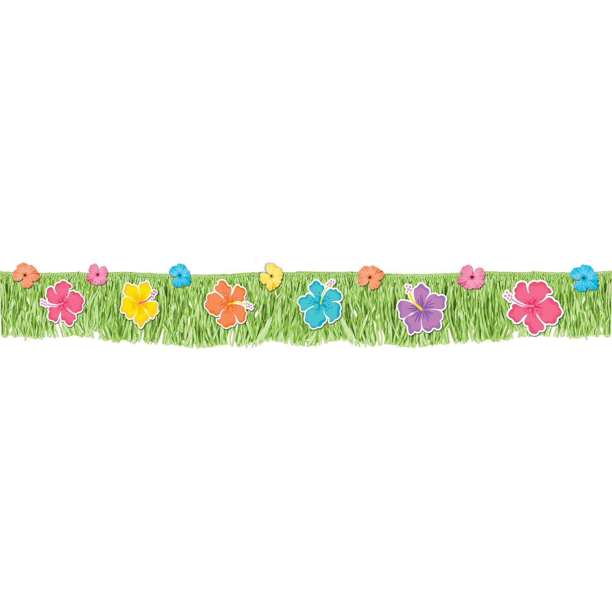 Summer Hibiscus Fringed Plastic Banner & Fabric Flowers 23cm x 178cm Each