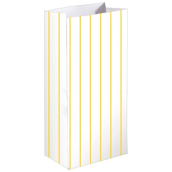 Sunshine Yellow Stripe Paper Treat Bags 21cm x 13cm x 8cm 8pk
