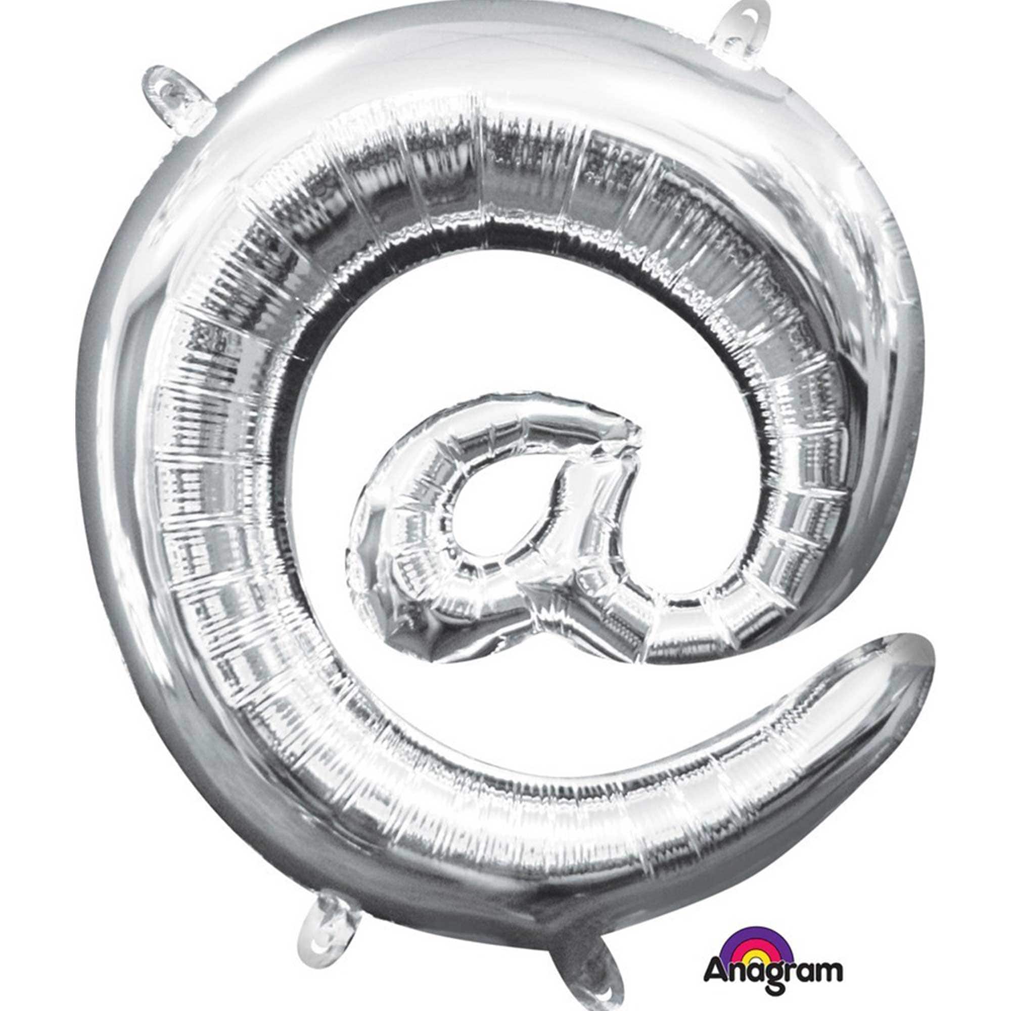 CI: Symbol @ Silver L16, 33cm, Self Sealing Foil Balloon , Air Fill only. Not meant for use with helium, will not float. Includes straw