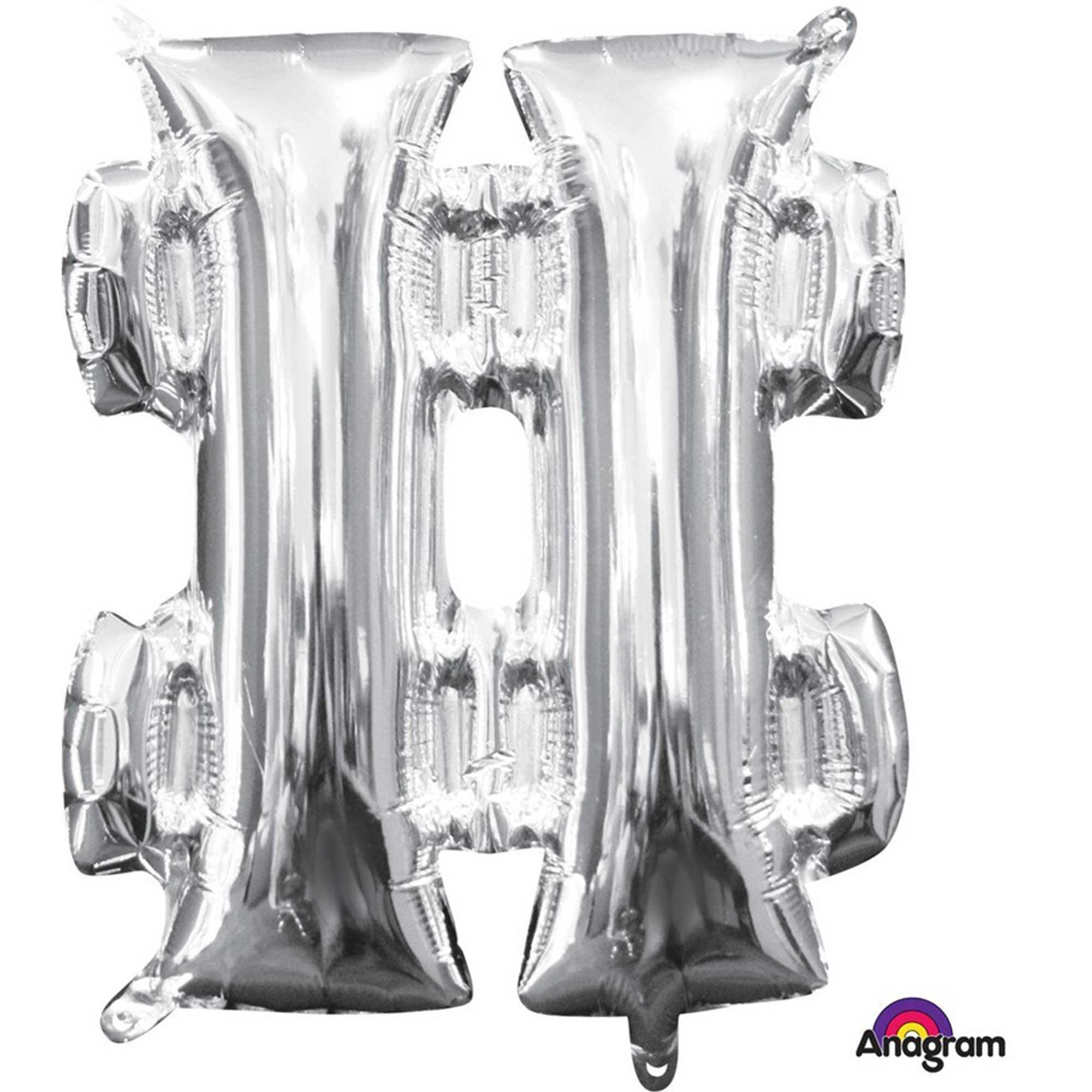 CI: Symbol # Silver L16, 33cm, Self Sealing Foil Balloon , Air Fill only. Not meant for use with helium, will not float. Includes straw