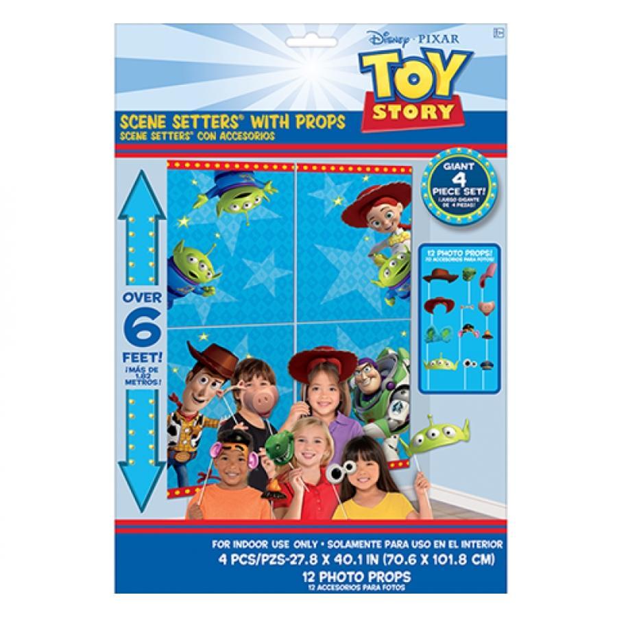 Toy Story 4 Scene Setter with Props Cardstock and plastic Contains: 4 x 70cm x 101cm & 12 Assorted Photo Props 16 per package