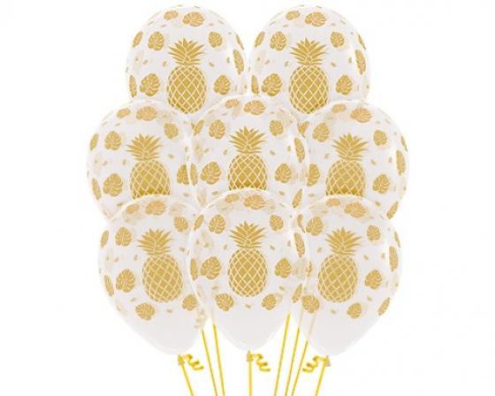 Sempertex 30cm Tropical Design on Crystal Clear Latex Balloons, 12PK, Latex Balloon. 90% biodegradable within 2 years., 30cm when inflated, 12 Pack