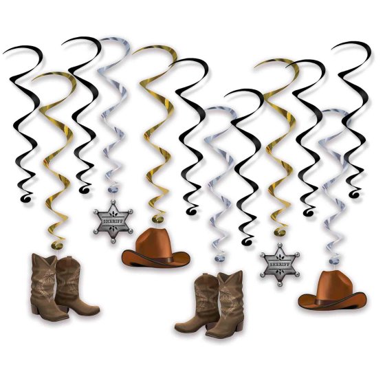 Western Whirls 12pk Size ranges from 38cm to 70cm 6 whirls with icons 6 plain whirls