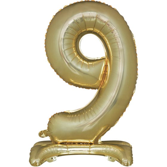 White Gold Large Number 9 Air Filled Standing Foil Balloon 76cm Each