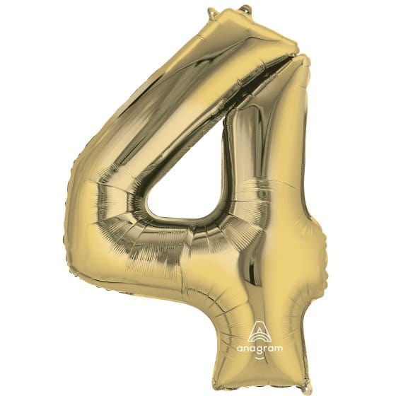 White Gold Numeral 4 SuperShape Foil Balloon 86cm Each