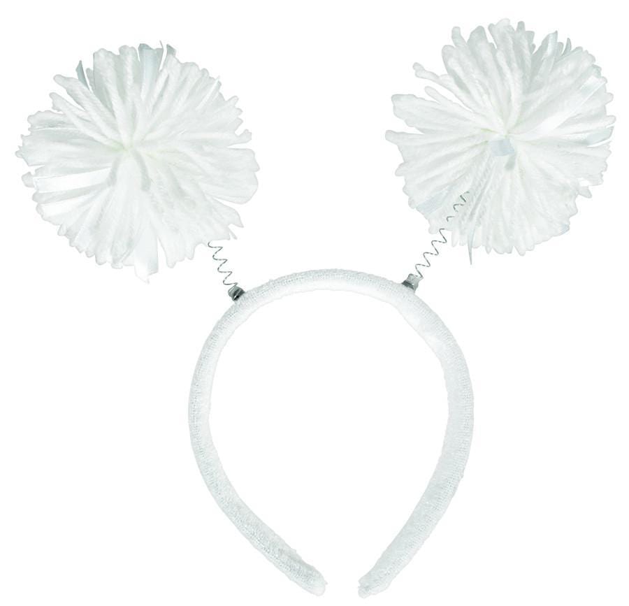 White Pom Pom Headbopper 22cm x 11cm Each | Online Party Store | White Coloured Wearables