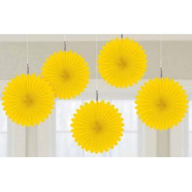 Yellow Mini Fan Decorations 6in 5pk | Online Party Store | Yellow Coloured Decorations