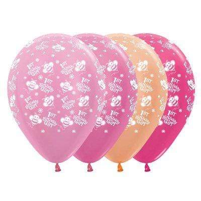 Sempertex 30cm 1st Birthday Girl Bumble Bee's Satin Pearl & Metallic Assorted Latex Balloons, 25PK, Latex Balloon. 90% biodegradable within 2 years., 30cm when inflated, 25 Pack