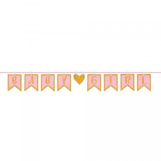 Baby Shower Girl Clothespin Glittered Letter Banner 16cm x 3.65m Each | Online Party Store | Baby Shower Pink Party Supplies