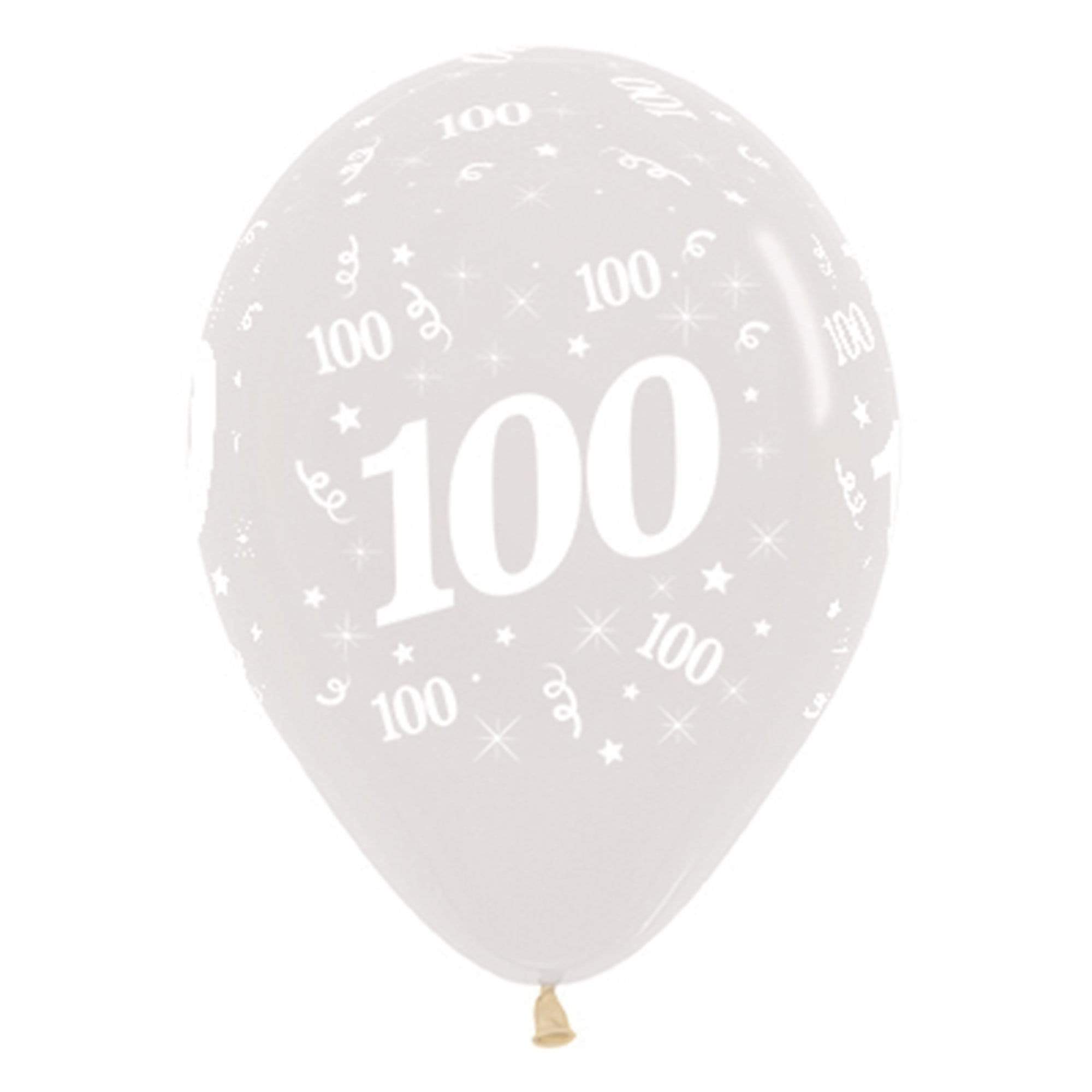 Sempertex 30cm Age 100 Crystal Clear Latex Balloons, 25PK, Latex Balloon. 90% biodegradable within 2 years., 30cm when inflated, 25 Pack