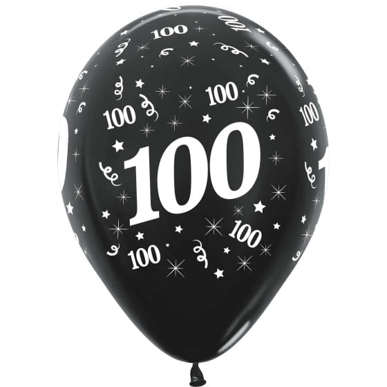 Sempertex 30cm Age 100 Metallic Black Latex Balloons, 25Pk