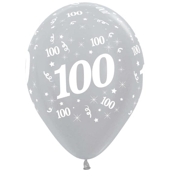Sempertex 30cm Age 100 Satin Pearl Silver Latex Balloons, 25Pk