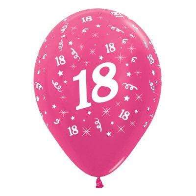 Sempertex 30cm Age 18 Metallic Fuchsia Latex Balloons, 25PK, Latex Balloon. 90% biodegradable within 2 years., 30cm when inflated, 25 Pack