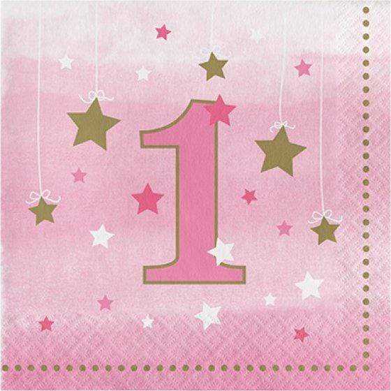 One Little Star Girl Lunch Napkins 1st Birthday 16pk | Online Party Store | 1st Birthday Party Supplies