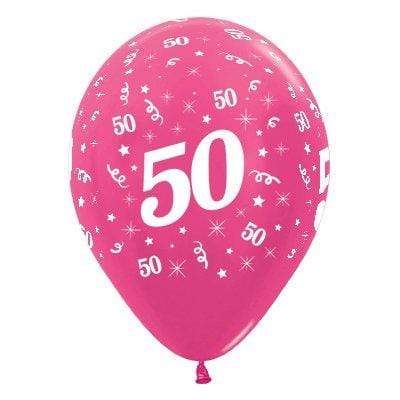 Sempertex 30cm Age 50 Metallic Fuchsia Latex Balloons, 6PK, Latex Balloon. 90% biodegradable within 2 years., 30cm when inflated, 6 Pack