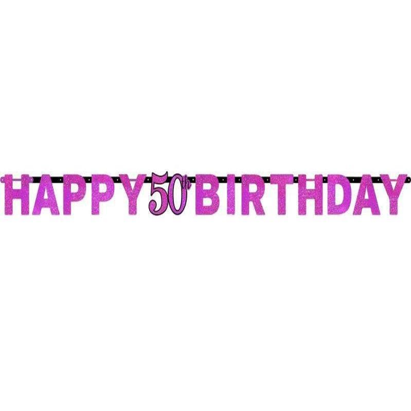 Pink Celebration 50th Prismatic Letter Banner 2.13m x 17cm Each | Online Party Store | 50th Birthday Party Supplies