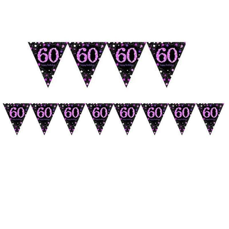 Pink Celebration 60 Prismatic Pennant Banner - Plastic, 12ft (3.65m), 12 flags 6.5in x 8.5in (16.5cm x 21.6cm), Plastic