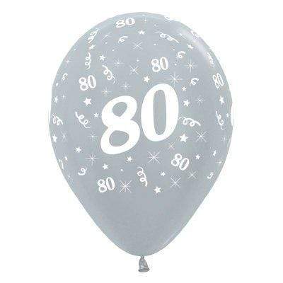Age 80 Satin Pearl Silver Latex Balloon 30cm 6pk | Online Party Store | 80th Birthday Party Supplies