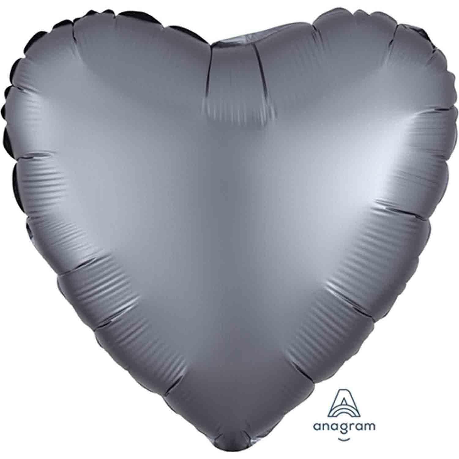 Satin Luxe Graphite Heart Foil Balloon 45cm Each | Online Party Store | Solid Colours Hearts Foil Balloons