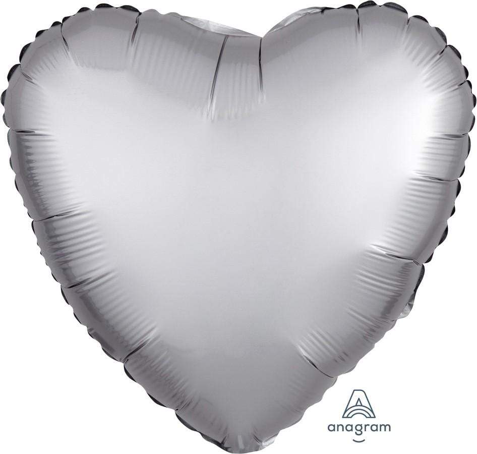 Satin Luxe Platinum Heart Foil Balloon 45cm Each | Online Party Store | Solid Colours Hearts Foil Balloons