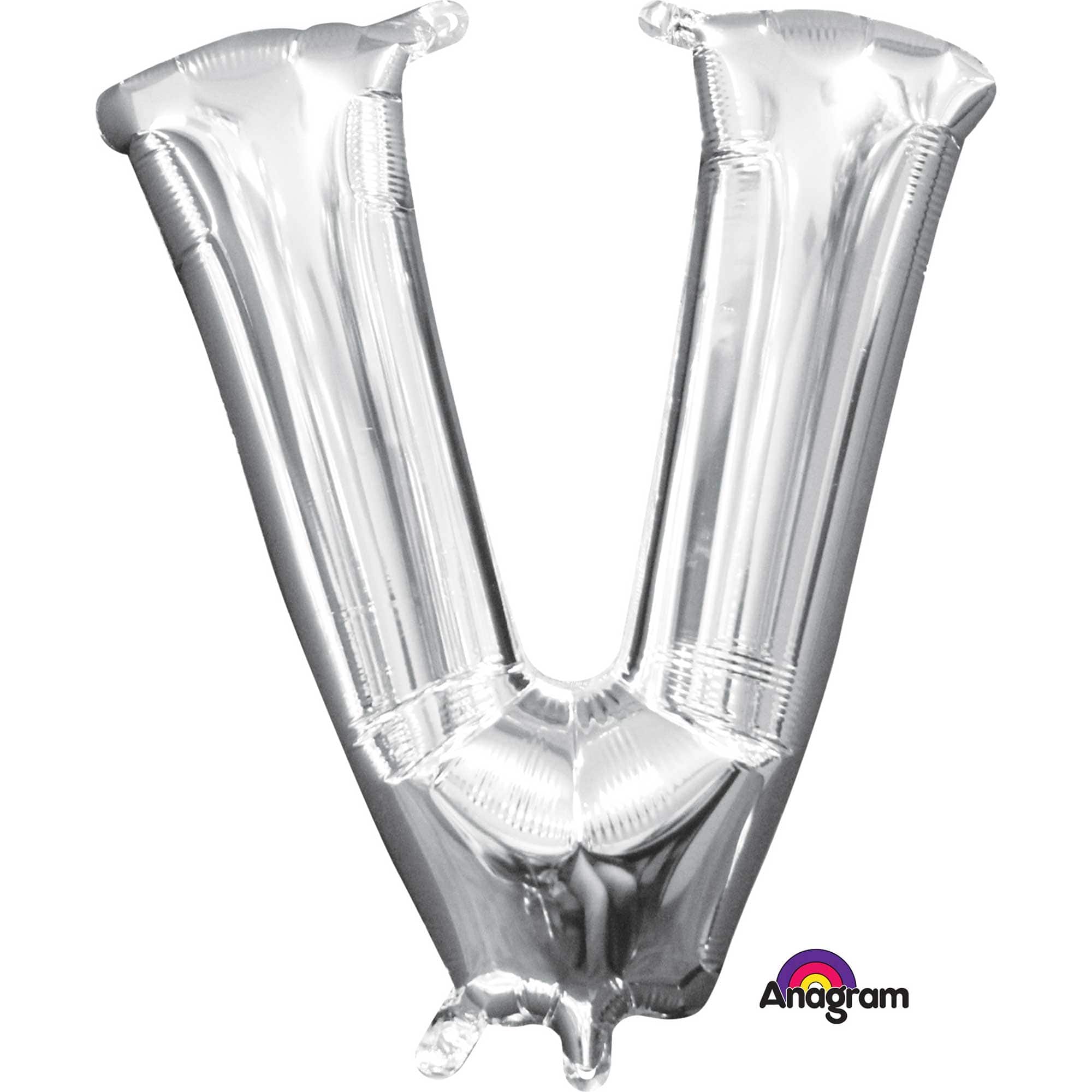 CI: Letter V Silver L16, 33cm, Self Sealing Foil Balloon , Air Fill only. Not meant for use with helium, will not float. Includes straw