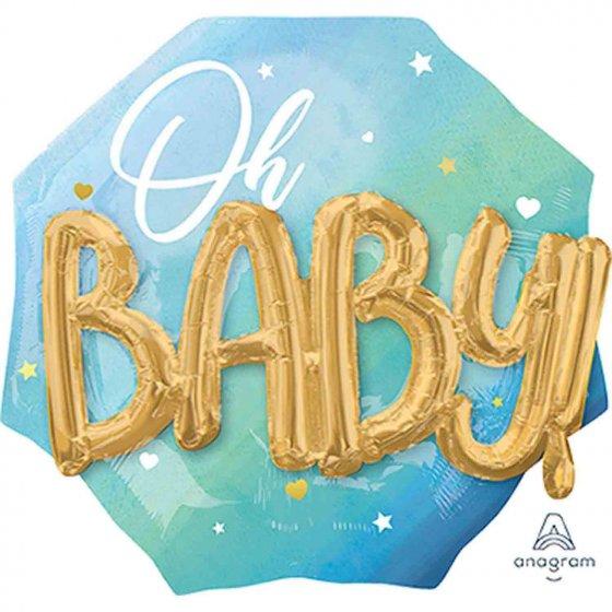 Oh Baby Blue Supershape Foil Balloon 76cm x 71cm Each | Online Party Store | Oh Baby Boy Party Supplies