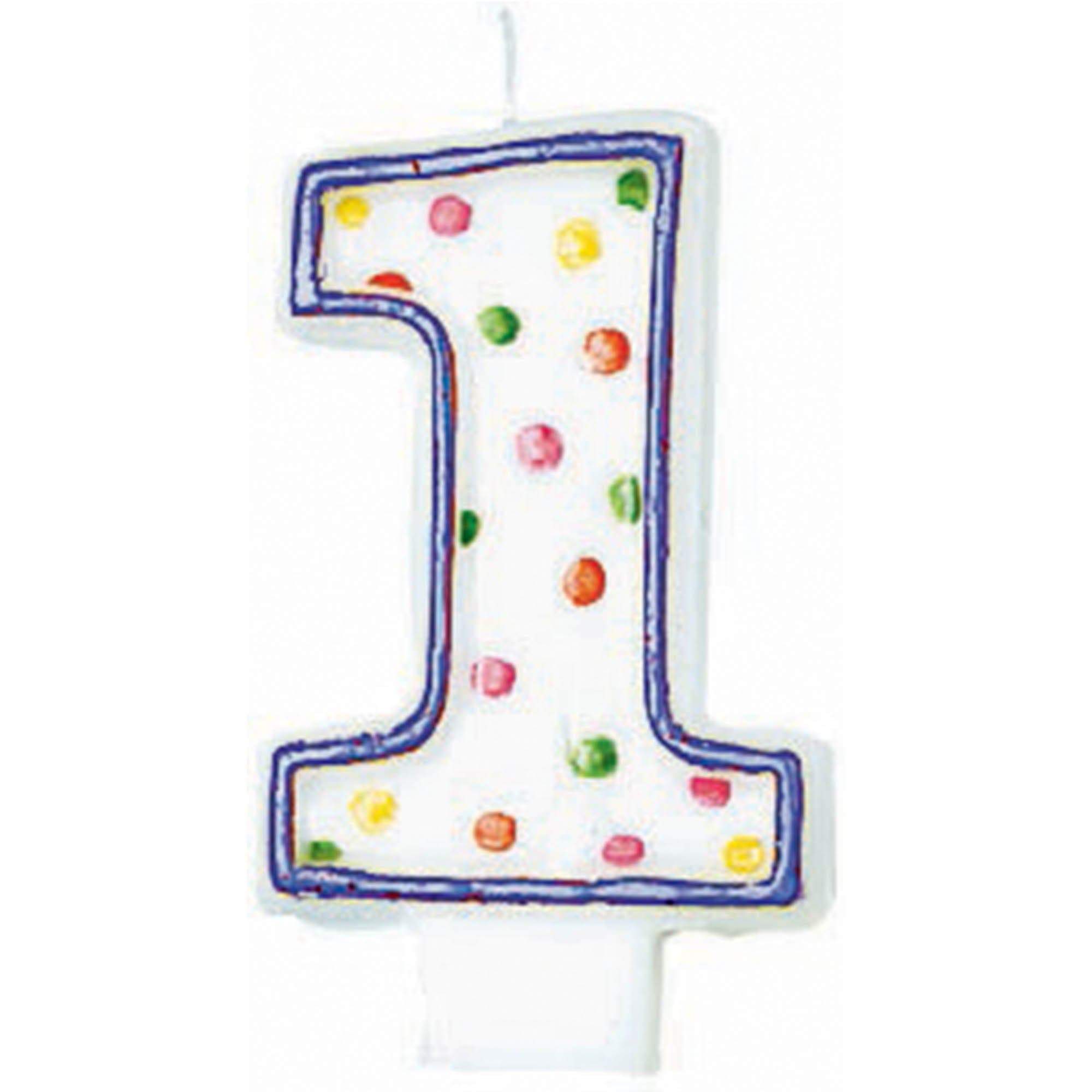 Candle Numeral Polka Dots #1, 3.8cm x 7.6cm, Wax, 1 per package