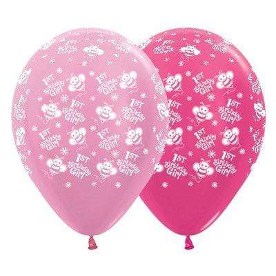 Sempertex 30cm 1st Birthday Girl Bumble Bee's Satin Pearl Pink & Metallic Fuchsia Latex Balloons, 6PK, Latex Balloon. 90% biodegradable within 2 years., 30cm when inflated, 6 Pack