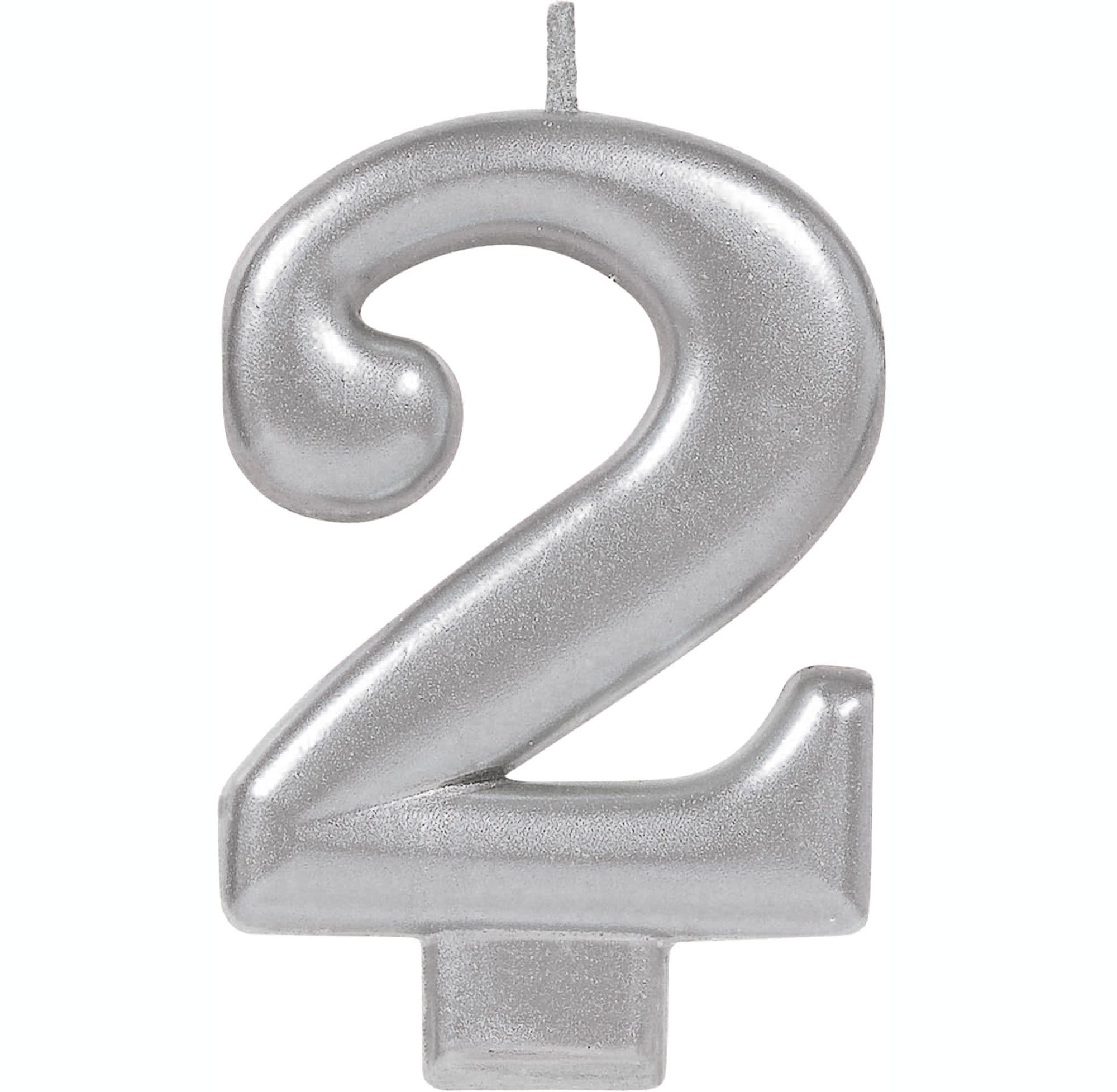 Candle Numeral Moulded Metallic Silver #2, 5.7cm x 8.3cm, Wax, 1 per package