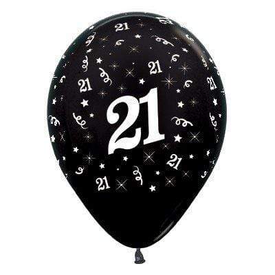 Sempertex 30cm Age 21 Metallic Black Latex Balloons, 25PK, Latex Balloon. 90% biodegradable within 2 years., 30cm when inflated, 25 Pack