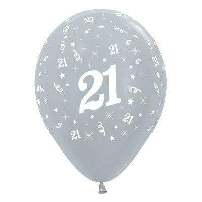 Sempertex 30cm Age 21 Satin Pearl Silver Latex Balloons, 25PK, Latex Balloon. 90% biodegradable within 2 years., 30cm when inflated, 25 Pack