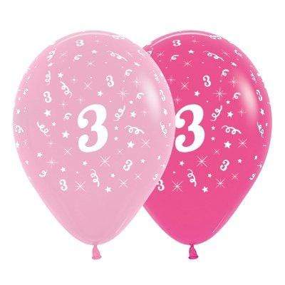 Age 3 Fashion Pink Assorted Latex Balloons 30cm 6pk