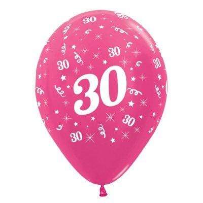 Sempertex 30cm Age 30 Metallic Fuchsia Latex Balloons, 25PK, Latex Balloon. 90% biodegradable within 2 years., 30cm when inflated, 25 Pack