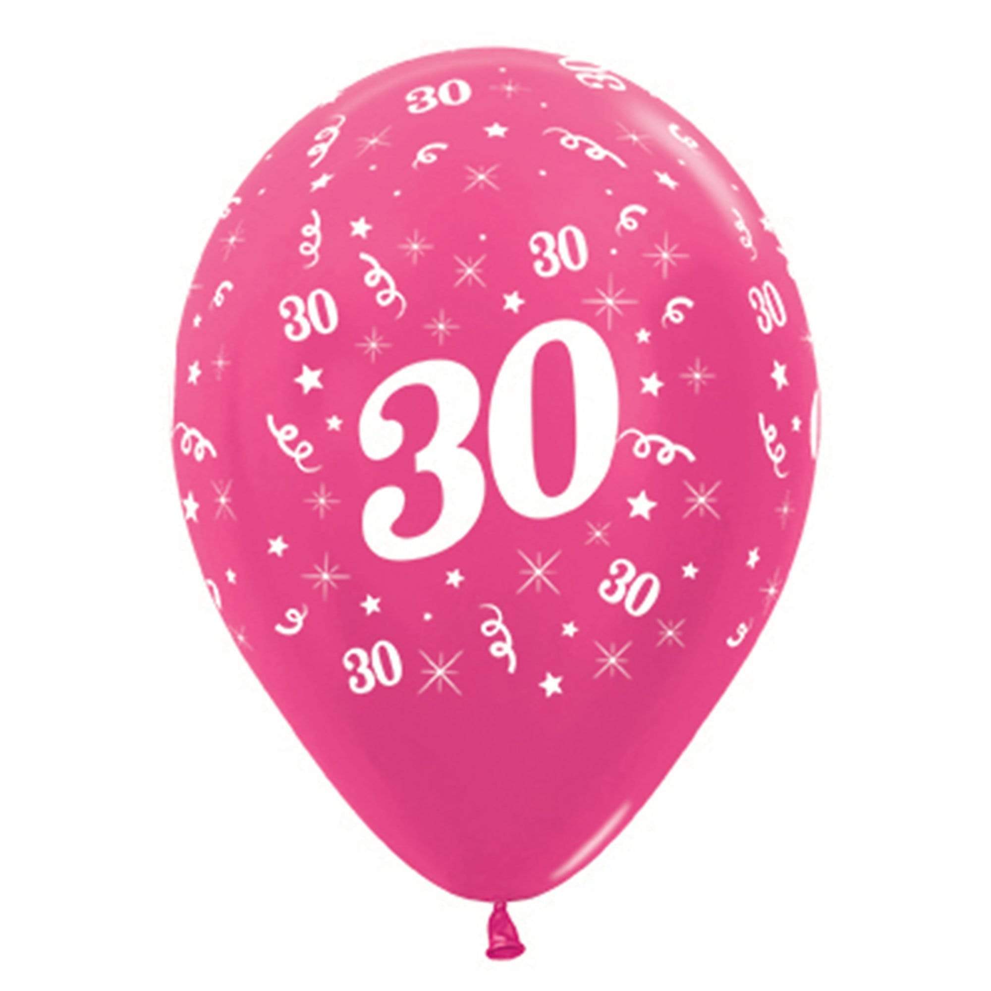 Sempertex 30cm Age 30 Metallic Fuchsia Latex Balloons, 6PK, Latex Balloon. 90% biodegradable within 2 years., 30cm when inflated, 6 Pack