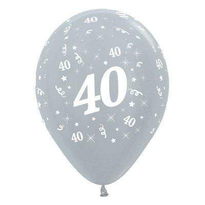Sempertex 30cm Age 40 Satin Pearl Silver Latex Balloons, 25PK, Latex Balloon. 90% biodegradable within 2 years., 30cm when inflated, 25 Pack
