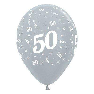 Sempertex 30cm Age 50 Satin Pearl Silver Latex Balloons, 6PK, Latex Balloon. 90% biodegradable within 2 years., 30cm when inflated, 6 Pack