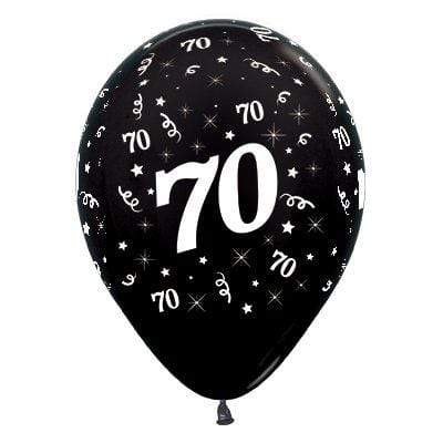Sempertex 30cm Age 70 Metallic Black Latex Balloons, 6PK, Latex Balloon. 90% biodegradable within 2 years., 30cm when inflated, 6 Pack