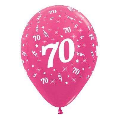 Sempertex 30cm Age 70 Metallic Fuchsia Latex Balloons, 6PK, Latex Balloon. 90% biodegradable within 2 years., 30cm when inflated, 6 Pack