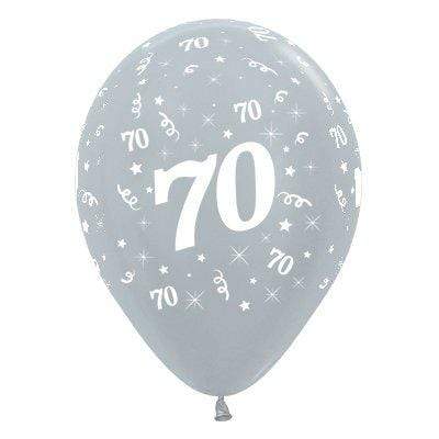 Sempertex 30cm Age 70 Satin Pearl Silver Latex Balloons, 25PK, Latex Balloon. 90% biodegradable within 2 years., 30cm when inflated, 25 Pack