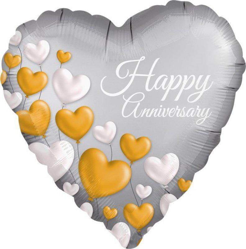 Anniversary Platinum Hearts Foil Balloon 45cm Each | Online Party Store | Wedding & Anniversary Foil Balloon