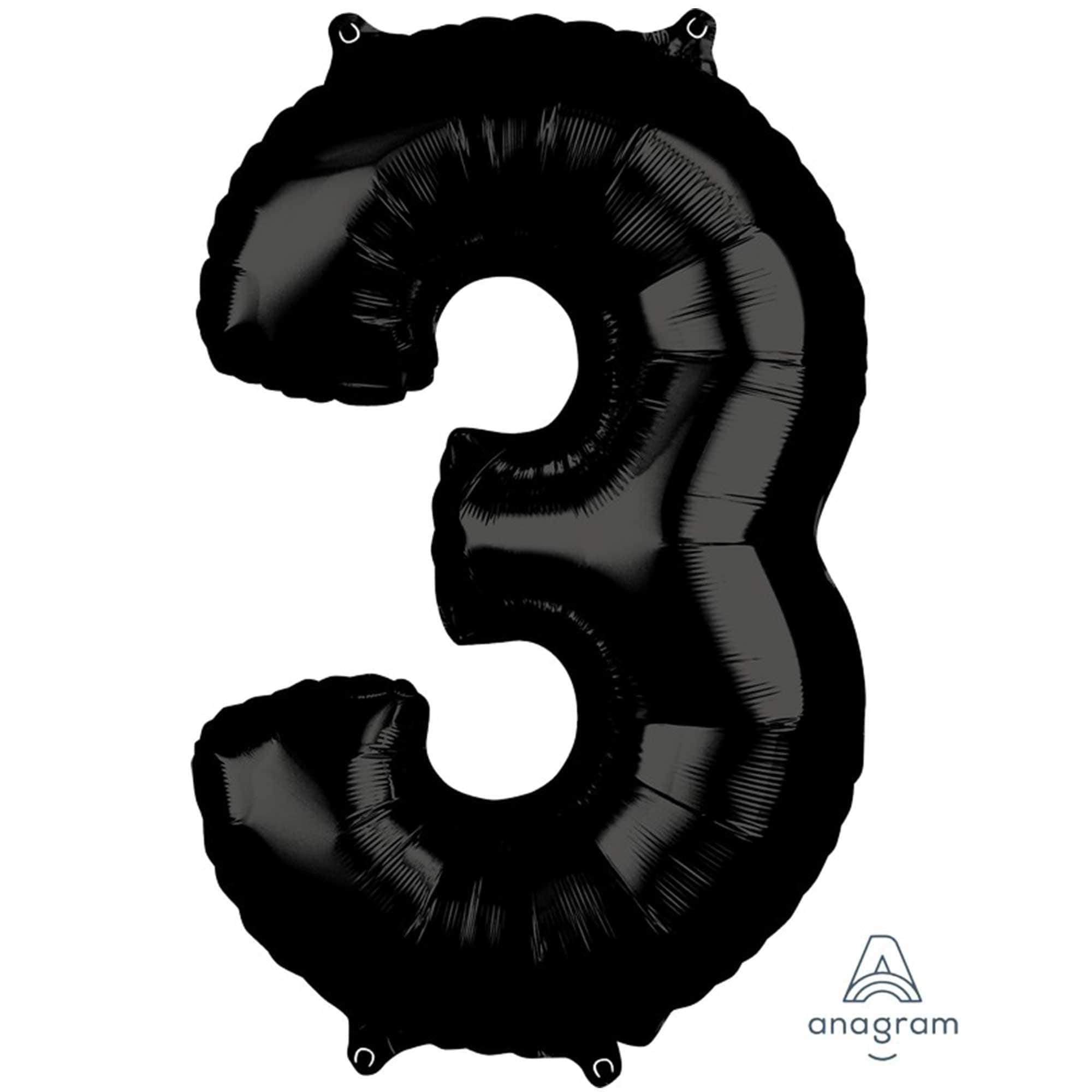 Black Numeral 3 Mid-Size Shape Foil Balloon Balloon 66cm Each | Online Party Store | Numbers Foil Balloons