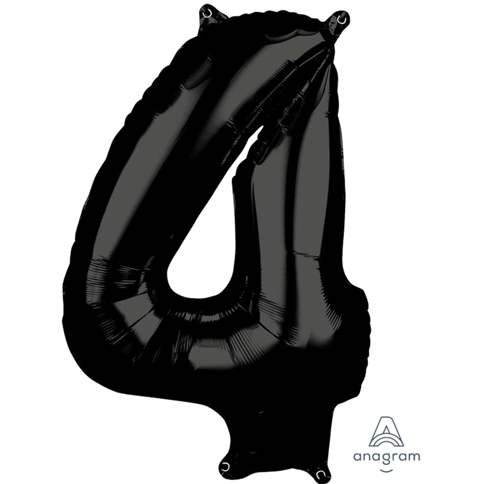 Black Numeral 4 Mid-Size Shape Foil Balloon Balloon 66cm Each | Online Party Store | Numbers Foil Balloons