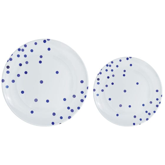 Premium Plastic Plates Hot Stamped with Bright Royal Blue Dots, Boxed multipack 10 x 26cm & 10 x 19cm., Hand wash only, 20 per pack